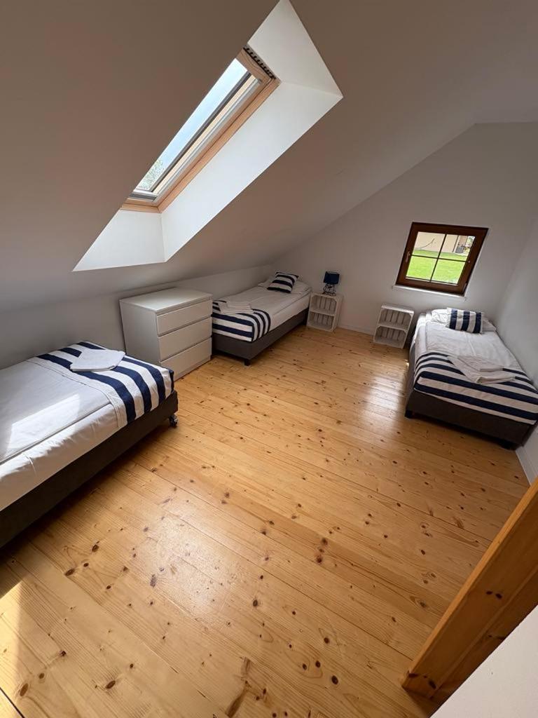 Dom z 2 sypialniami. Featuring a private entrance, this air-conditioned holiday home consists of 1 living room, 2 separate bedrooms and 2 bathrooms with a shower and a hairdryer. Guests can make meals in the kitchen that is equipped with a stovetop, a refrigerator, kitchenware and an oven. Boasting a terrace with garden views, this holiday home also provides a wardrobe and a flat-screen TV. The unit offers 6 beds. Dom wakacyjny - 7 osobowy. Powierzchnia pokoju ok.: 40 mkw.