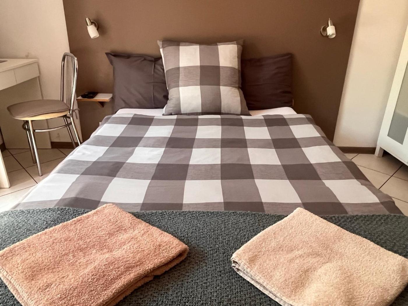Pokój Dwuosobowy typu Classic z prysznicem. The double room features a tea and coffee maker and a wardrobe, as well as a shared bathroom boasting a walk-in shower. The unit has 1 bed. Pokój Dwuosobowy - 2 osobowy. Powierzchnia pokoju ok.: 10 mkw. ;