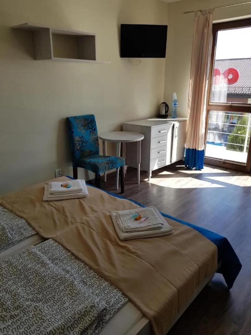 Pokój dwuosobowy. The double room offers a tea and coffee maker, a seating area, a balcony with city views as well as a private bathroom boasting a shower. The unit has 3 beds. Pokój Dwuosobowy - 3 osobowy. Powierzchnia pokoju ok.: 15 mkw. ;