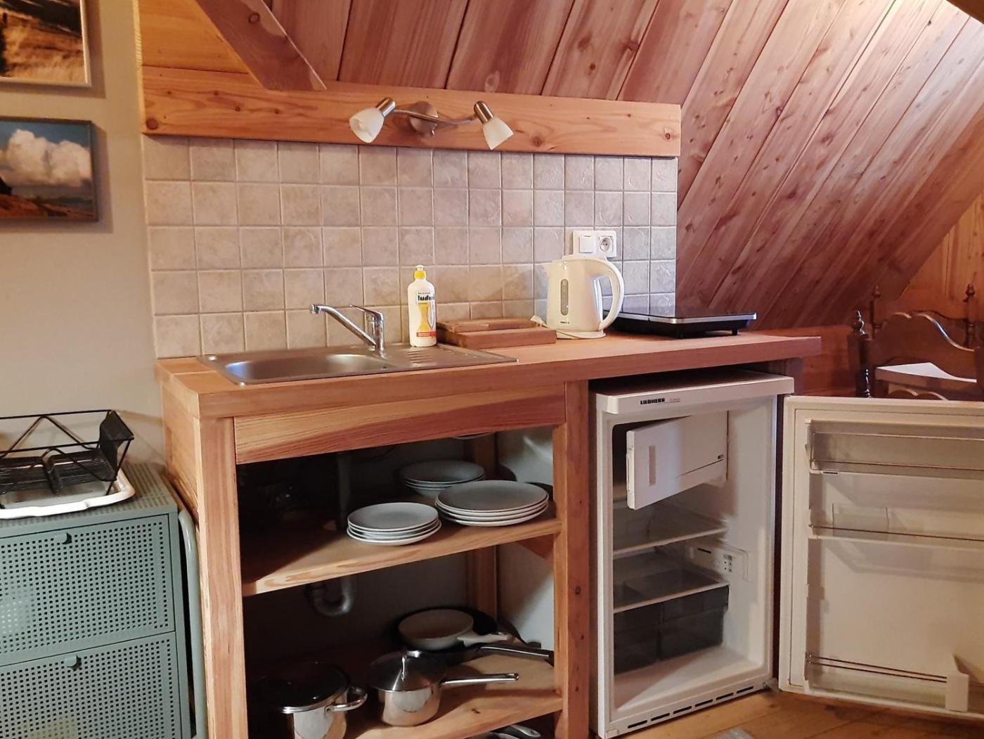 Studio z widokiem na góry. Guests will find a stovetop, a refrigerator, kitchenware and a tea and coffee maker in the fully equipped kitchenette. The studio also has a barbecue. The studio offers a seating area, a dining area, as well as a private bathroom featuring a shower and a hairdryer. The unit offers 2 beds. Studio - 3 osobowy. Powierzchnia pokoju ok.: 20 mkw.
