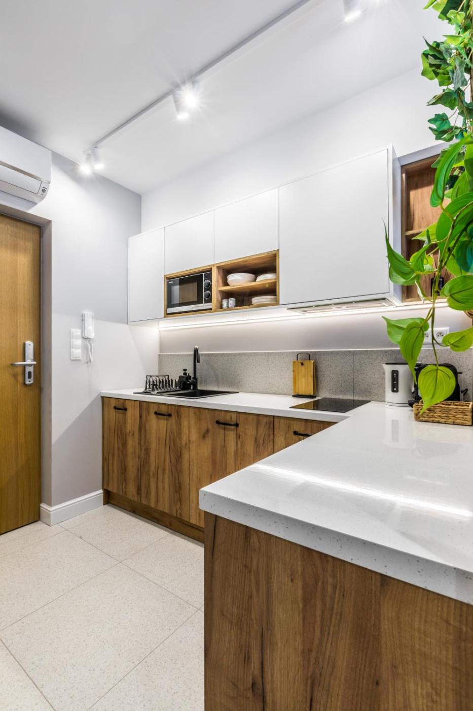 Apartament. This apartment consists of 1 living room, 1 separate bedroom and 1 bathroom with a shower and free toiletries. Guests can make meals in the kitchenette that is equipped with a stovetop, a refrigerator, a dishwasher and kitchenware. The air-conditioned apartment provides a flat-screen TV, soundproof walls, a tea and coffee maker, a wardrobe as well as city views. The unit offers 2 beds. Apartament - 4 osobowy. Powierzchnia pokoju ok.: 35 mkw. ;