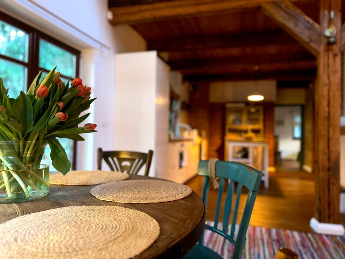 Dom wakacyjny. The fireplace is a top feature of this holiday home. This spacious holiday home comes with 1 living room, 3 separate bedrooms and 1 bathroom with a bath and a shower. Guests will find a stovetop, a refrigerator, a dishwasher and kitchenware in the well-fitted kitchen. The holiday home also includes a barbecue. The holiday home has a washing machine, a coffee machine, a seating area as well as a terrace with garden views. The unit has 5 beds. Dom wakacyjny - 8 osobowy. Powierzchnia pokoju ok.: 140 mkw.